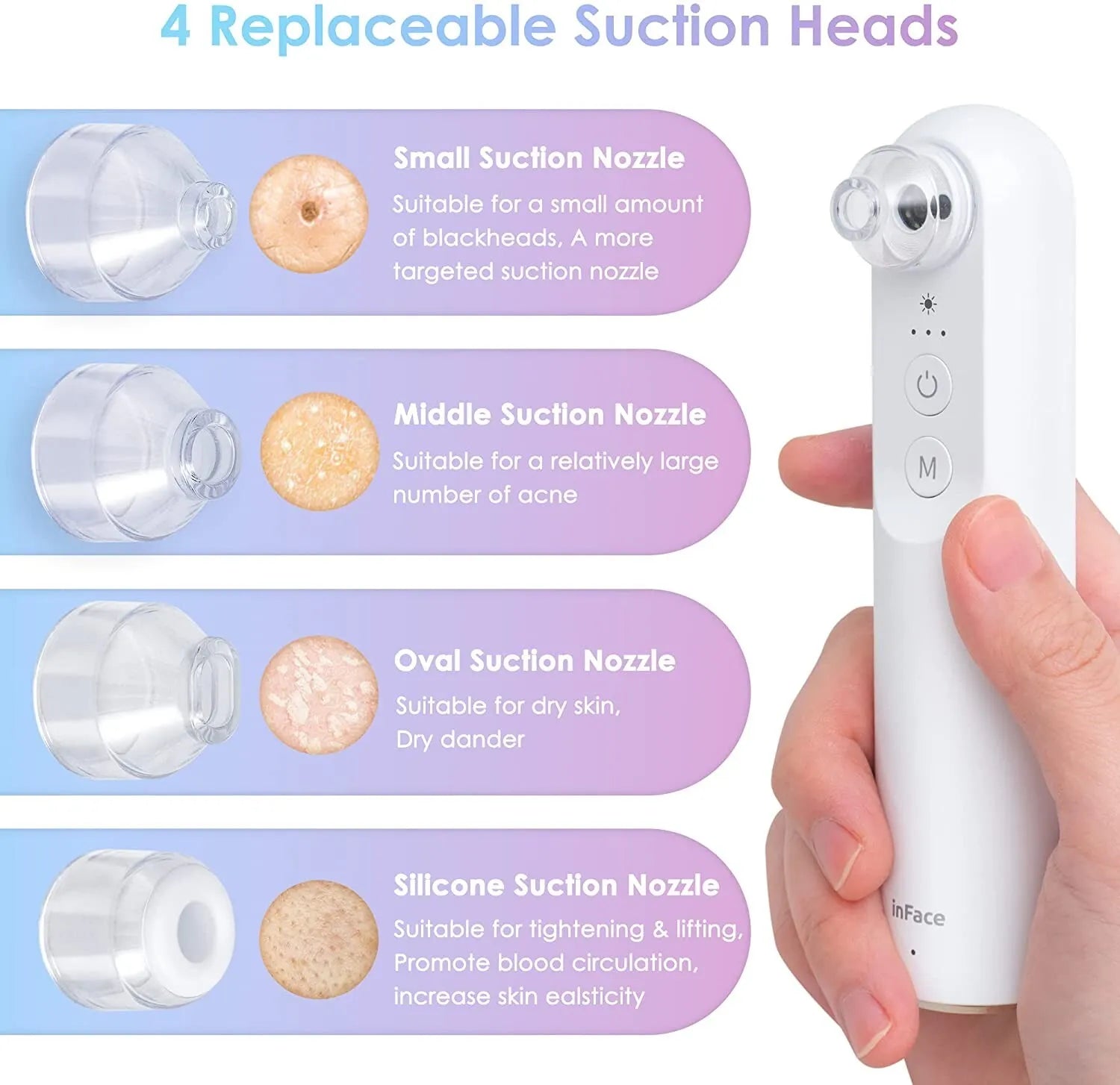 - Customizable Skin Care: Tailor your treatment to your skin type and specific needs with the 4 Special Silica Heads and 3 Suction Speeds. The different heads are designed for various areas of your face, including the delicate T-zone, while the adjustable suction speeds cater to oily, normal, or sensitive skin. For an even deeper clean, use the 40°C Hot Compress to open pores and enhance the suction experience. The blue bio-ray therapy further balances sebum production and calms your skin after treatment.